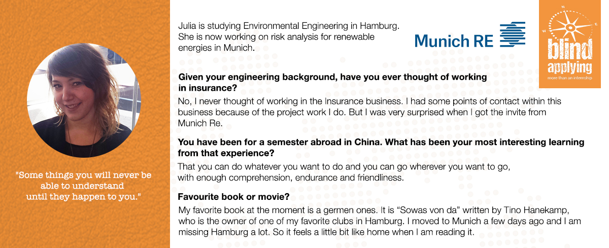 Munich Re is offering an internship in their Green Tech Solutions department. Research, data analysis, model testing and looking for trends in the renewables sector will keep this lucky intern pretty busy.